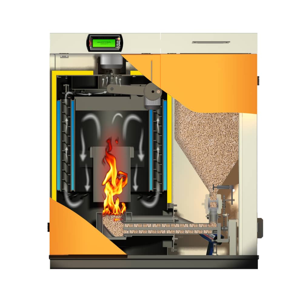 Co istotne, kocioł pelletowy jest wyposażony w zaawansowaną automatykę. Ta technologia automatyzuje proces spalania, dostarczając paliwo do spalania, regulując dopływ powietrza, kontrolując temperaturę, rozpalając i gasząc ogień, oraz czyszcząc palnik.